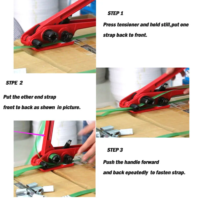 1, подходит для всех видов пэт пластиковых ремней2, ручная затяжка, уплотнение зазубрин, резка, простота в эксплуатацииОписание