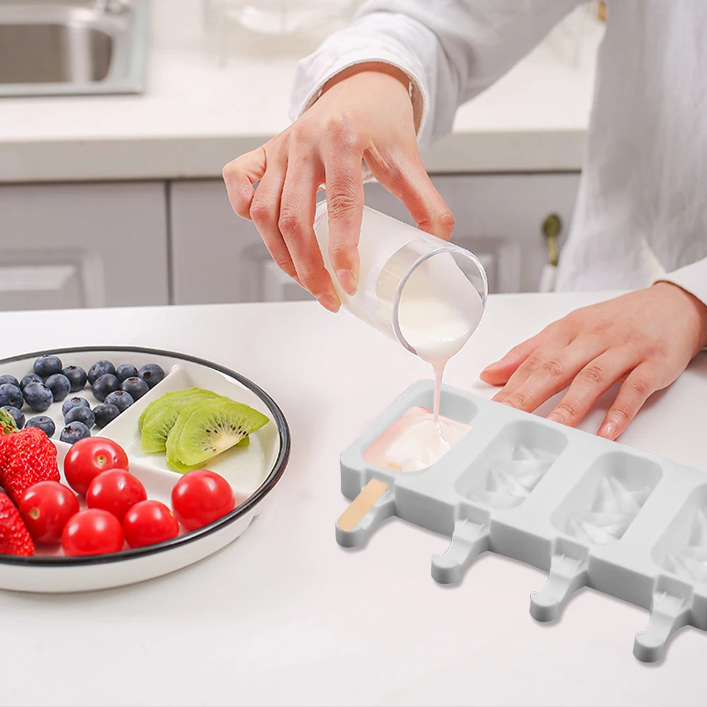 Особенности:Изготовлен из силикона, очень мягкий.Абсолютно новыйБезвкусный, нетоксичный.Легко выемки.Легко чистится.Не легко деформировать.С длительным сроком службы.Безопасен для использования в духовках, микроволновках, посудомоечной машине и холодильнике.Используется для изготовления мороженого, шоколадного торта и т. Д.Спецификация:Материал: пищевая упаковкаСиликон Цвет: белыйПолость: 4 гнезда пресс-формыВысокая термостойкость: -40 ~ + 230 градусовНаружный размер:S:215*127*21 мм (Каждая сетка 68*38 мм)Рекомендации по использованию:1. Перед первым использованием Вымойте формы горячей водой и мылом, чтобы избежать различных вкусов.2. При первом использовании нанесите небольшое количество масла или сливочного масла на силиконовые формы.3. Мыть формы после использования с мылом и водой, используя мягкую губку.4. Используйте мягкую щетку для удаления мусора, приклеенного к небольшим индивидуальным канавкам формы.5. Не ударяйте сильно и не царапайте острыми инструментами.6. Не используйте ткани для сушки пресс-форм, предпочтительно сушить самостоятельно или использовать бумажные полотенца.7. Форма на духовке без гриля, но с осторожностью.8. Не нагревайте непосредственно от огня.9. Не делайте резких изменений температуры.Посылка включает в себя:1 х Форма для мороженого