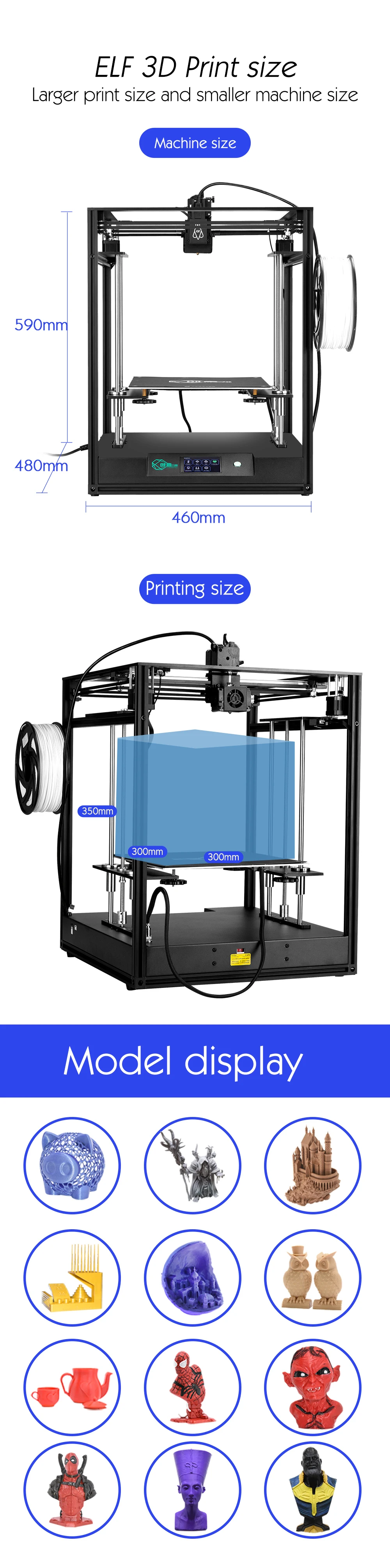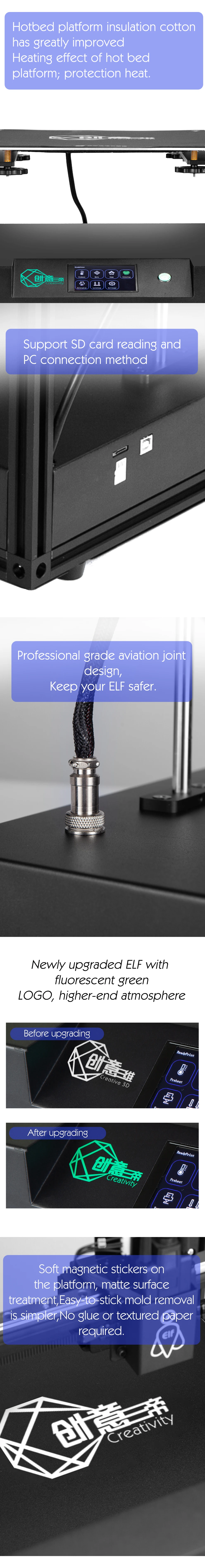 Описание:Творчество является одним из самых профессиональных 3D принтеров и аксессуаров из Китая. Эксклюзивная разработка двухцветных 3D-принтеров и основных принтеров XY3D хорошо воспринимается пользователями по всему миру; Мы стремимся быть вашим самым надежным поставщиком, наши будут использовать лучшие предложения цена для вас и единый сервис.