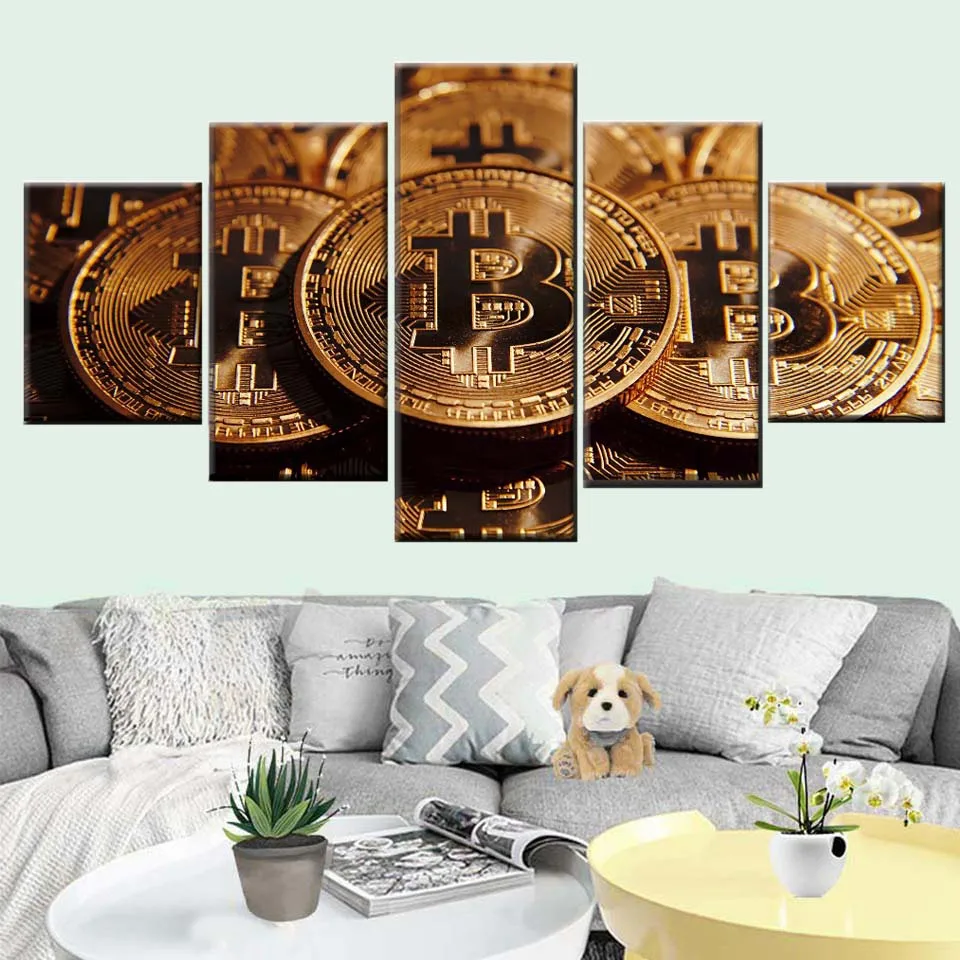 Modname = ckeditorСкандинавская стена арт-деко 5 шт. монета Биткоин Картина на холсте Печать Тип картина украшение дома постер художественная рамка