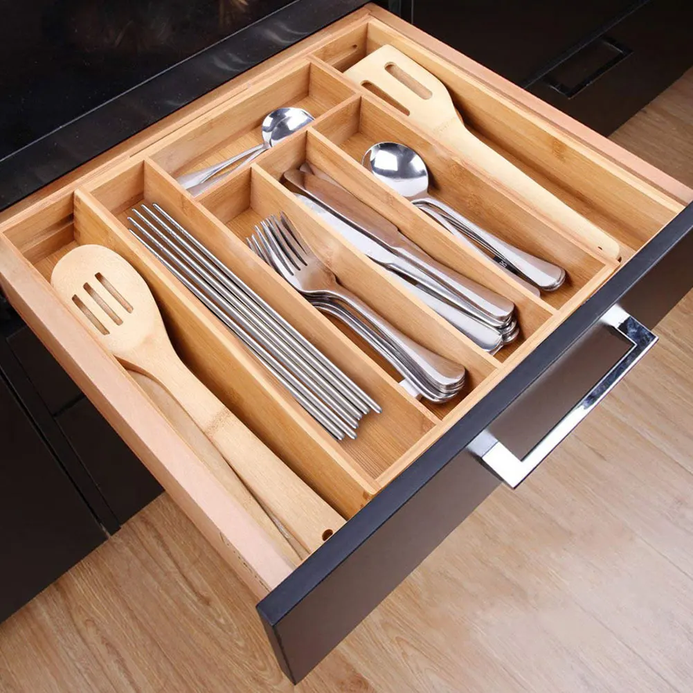 Выдвижной бамбуковый ящик коробка для столовых приборов для кухни бамбуковый Отсек Ящик Тип Коробка для хранения столовой посуды Органайзер-разделитель