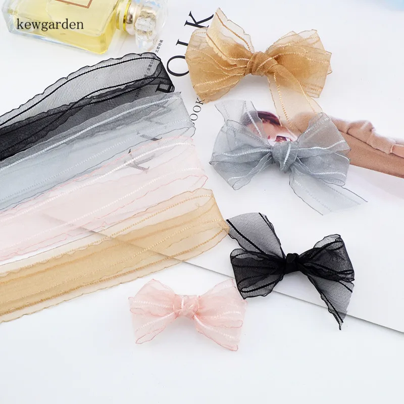 Kewgarden 25 мм 1 "нерегулярный край Снежная сетчатая вуаль лента вручную изготовленная лента DIY брошь для волос бант аксессуары тканевая лента для упаковки 5 метров 25 мм в ширину * 1 м * 5/лот
