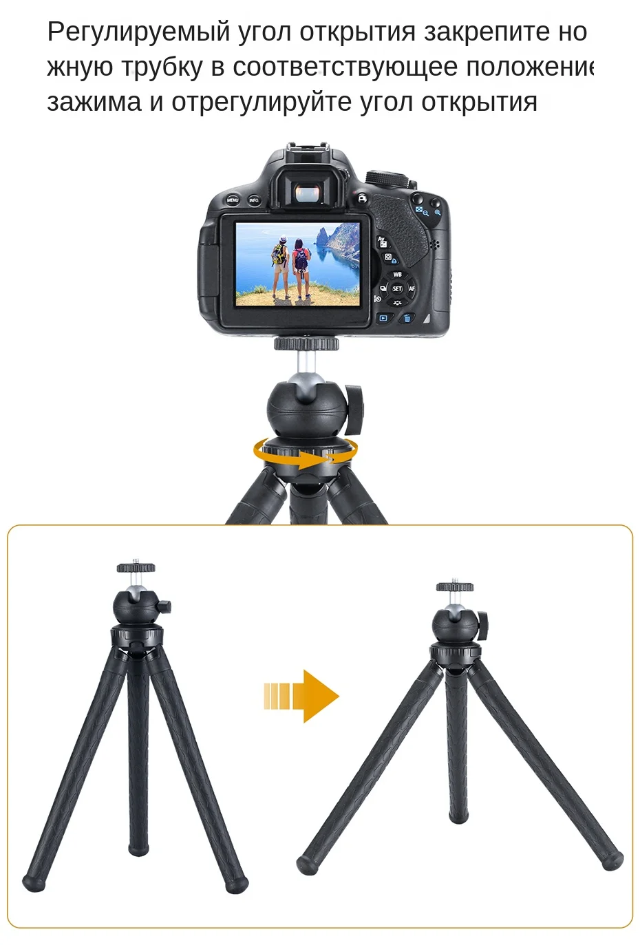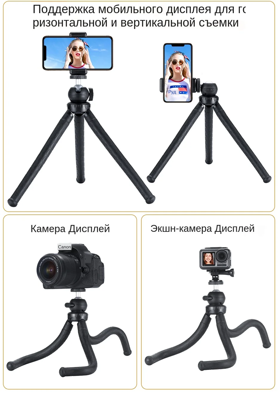 Универсальная совместимость позволяет поддерживать ваш смартфон, камеру, Gopro или веб-камеры, прикрепленные к высокой прочности крепления