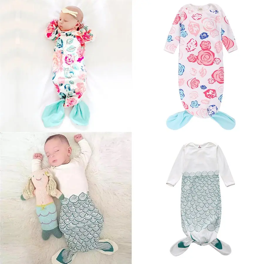 Для новорожденных; платья из хлопка детский спальный мешок пижама с длинными рукавами одеяло «хвост русалки» для надеваемое покрывало для Пижамы; одежда для сна для мальчиков и девочек