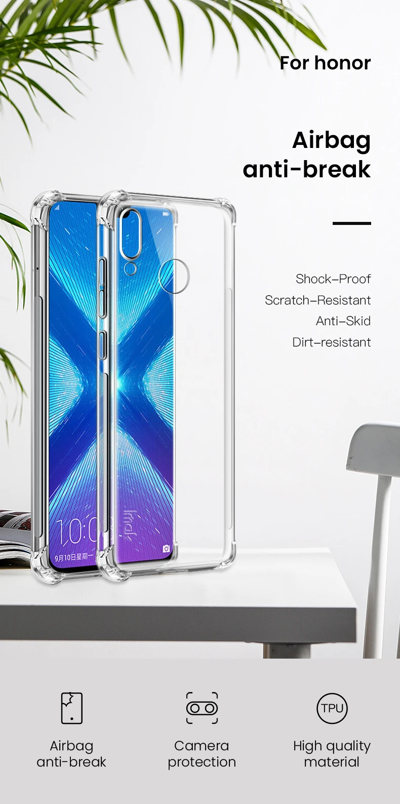 Описание Цвет: прозрачный чехол: Для huawei honor P10 Lite чехол для huawei honor 8a 8x 8c чехол для huawei honor P20 Pro Чехол для huawei honor 7a чехол для huawei honor 10 i 20i для huawei honor 10 20 характеристики чехла: 1. ударопрочный + устойчивый к царапинам + Противоскользящий + грязеотталкивающий + водонепроницаемый 2. защита Поверхности от царапин, пыли, отпечатков пальцев 3. модный дизайн, Легко надевается и легко снимается.
