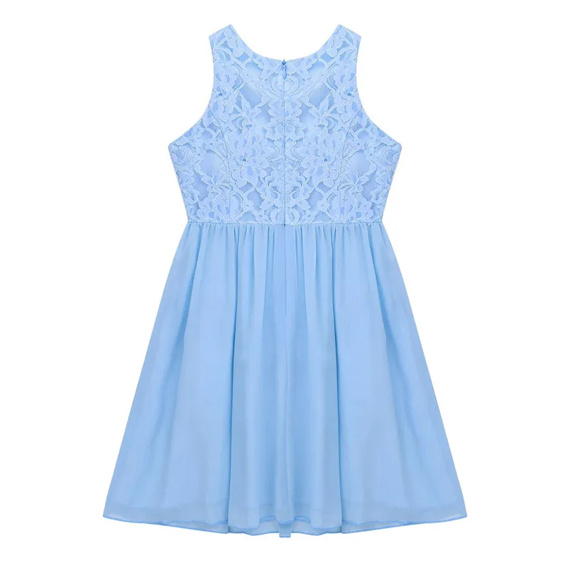 Скрытая молния сзади. 2 слоя платье, топ слоя шифона, 1 атласную подкладку. Красивое и стильное платье для вашей девочки.