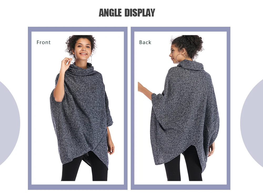 С рукавами «летучая мышь» свободные осенние женские пуловер вязать свитер женский Pull Femme Воронка плащ-накидка с высоким, плотно облегающим шею воротником Пуловеры и свитера