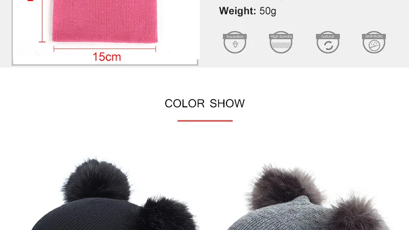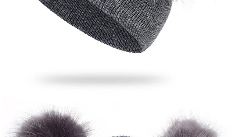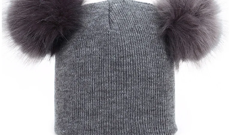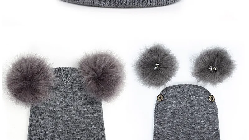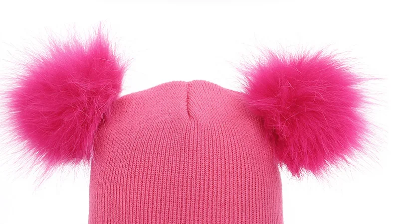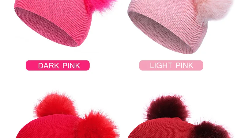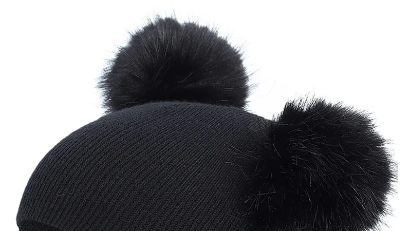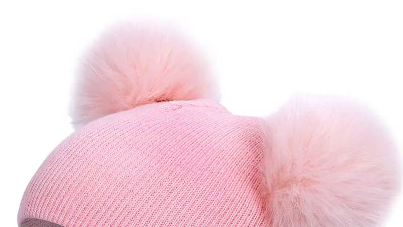 Милая детская зимняя шапка, теплая вязаная шапка с помпонами для мальчиков и девочек, детская однотонная хлопковая шапка-маска, Мягкий Топ для малышей