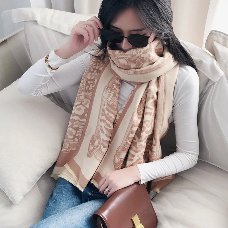 Зимний модальный шарф для женщин, леопардовые шелковые кашемировые шали и накидки FemmeРоскошный