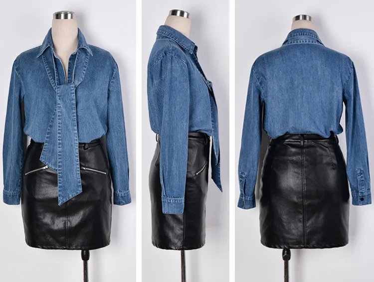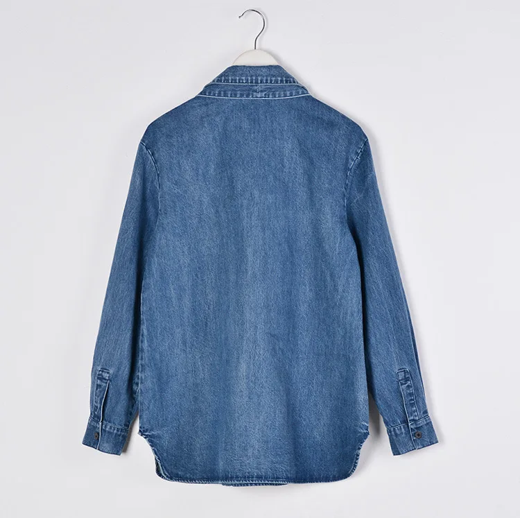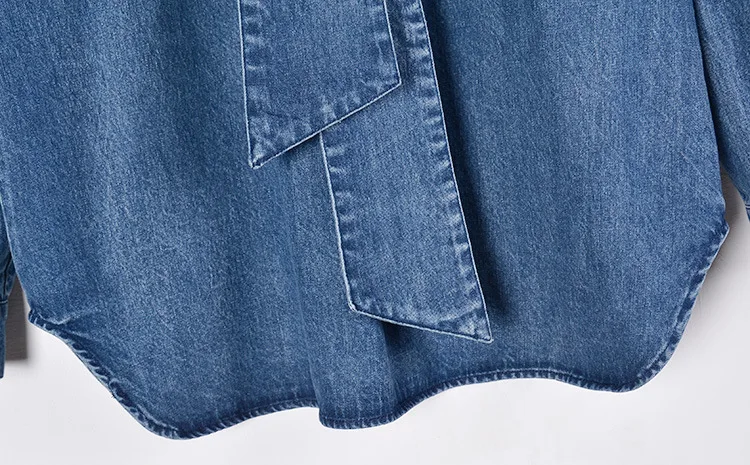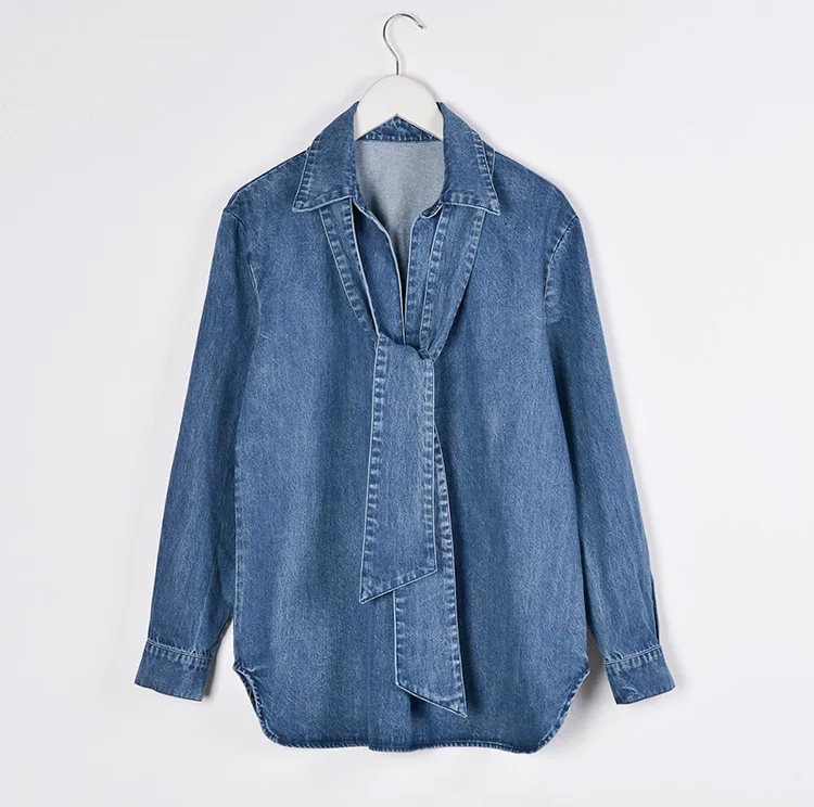 2019 Осенняя Новая женская рубашка Повседневная Свободная джинсовая рубашка синий галстук кардиган с подшитыми краями однобортная рубашка женская OL commuter темперамент Тонкая модная одежда