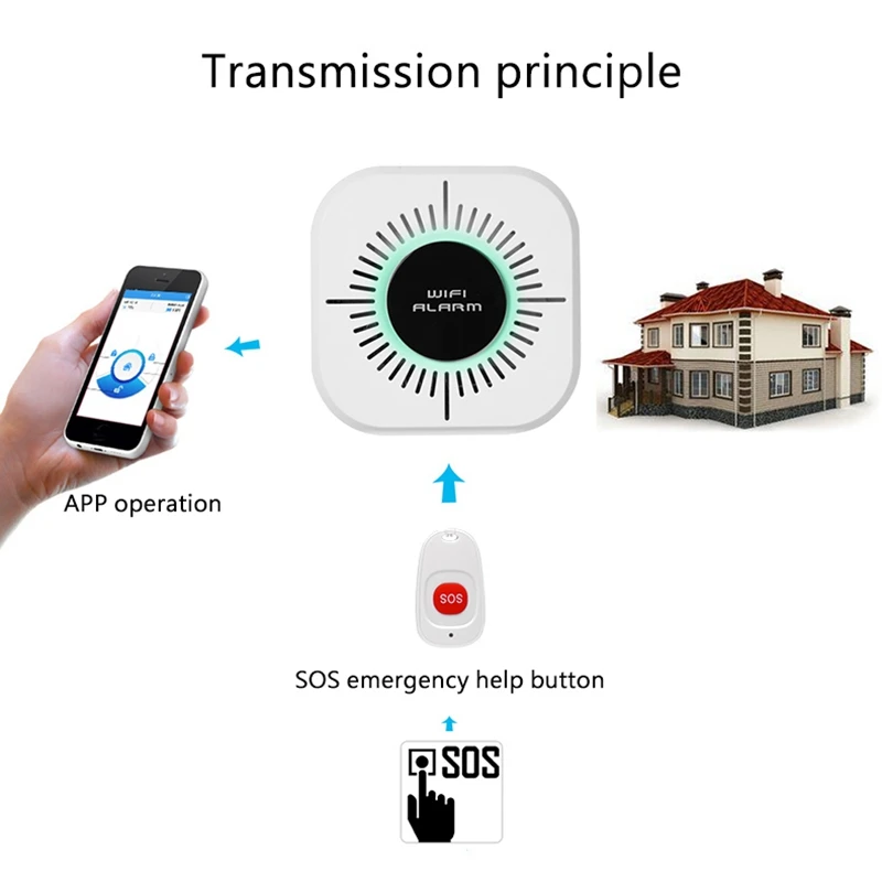 Wi-Fi сигнализация с приложением, включая пульт дистанционного управления/снятия, настройки параметров и управления аксессуарами. (Примечание: нет функции GSM, приложение для Android и IOS.)