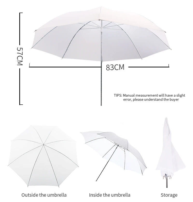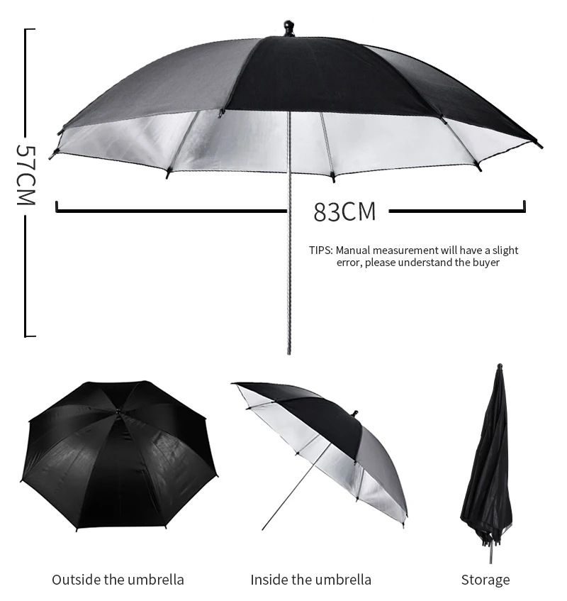 2 шт. 83 см прочная камера для фотостудии вспышка мягкий фото-зонт аксессуары для фотостудии черный серебристый цвет и 2 шт 83 см мягкий Зонт Новый 2 шт 33 дюймов 83 см вспышка полупрозрачный белый мягкий фото-зонт аксессуары для студии и 2 шт 33 дюймовый черный серебряный цвет зонтик Спецификация: Полупрозрачные зонтики можно использовать в качестве съемки или подпрыгивания светильник, чтобы уменьшить тени и производить ровный, мягкий, низкий контрастный светильник на относительно большой площади. Для shoot throught, это позволяет около 50% светильник передачи. Он действует как очень большой софтбокс по очень низкой цене. Зонты смягчают, расширяют и рассеивают светильник на выходе любого вольфрамового или студийного источника вспышки. Идеально подходит для фотосъемки в помещении или на открытом воздухе. Легкий, простой в использовании и сборке! Характеристики:-Материал: нейлон, алюминиевый вал-Размер: диаметр: 83 см (33 дюйма)/Длина в сложенном виде: 75 см (прибл.)/Диаметр вала: 8 мм (прибл.)-Цвет: прозрачный белый-Совместимость: подходит для всех студийных вспышек этот студийный Отражатель Зонтик-двухслойный (Черный и серебристый): черный снаружи, серебристый внутри. Серебряная Подкладка отражает светильник и свести к минимуму светильник потери при достижении максимальной степени светильник распределить свои светильник вес, простота в использовании и сборке факт идеально подходит для портретов и групповых снимков или съемок на больших предметах этот студийный отражатель зонтик двойной слой (черный и серебристый): черный снаружи, Серебряный внутри. Серебряная Подкладка отражает светильник и свести к минимуму светильник потери при достижении максимальной степени светильник распределить свои светильник вес, удобство в использовании и собрать тот факт, с постоянным фокусным расстоянием для портретов и групповых снимков или съемки на больших предметов Материал: нейлон и серебро светоотражающий материал, алюминиевый вал Размер: диаметр: 83 см (33 ") /Длина в сложенном виде: 75 см (прибл.) /Диаметр вала: 8 мм (прибл.) Цвет: черный и серебристый Совместимость: подходит для всех студийных вспышек комплектация: 2x33 дюйма полупрозрачный белый зонт 2x33 дюйма Черный Серебряный Отражатель зонта