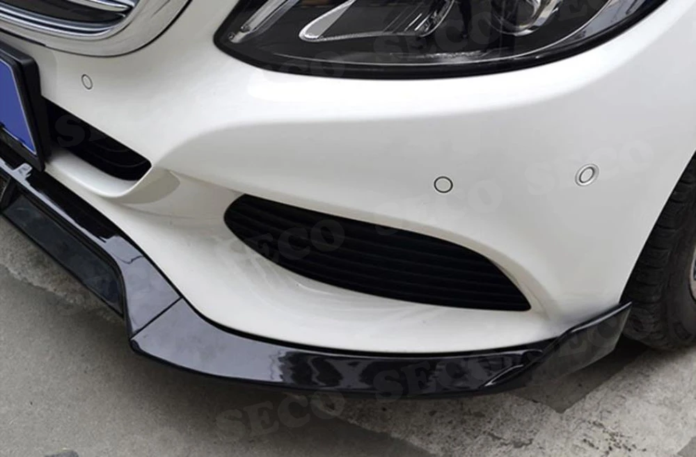 For W205 Front Lip Spoiler Aprons For Mercedes Benz W205 C205 C200 C300 C43 AMG 2014-2019 3PCS ABS Black Bumper Guard