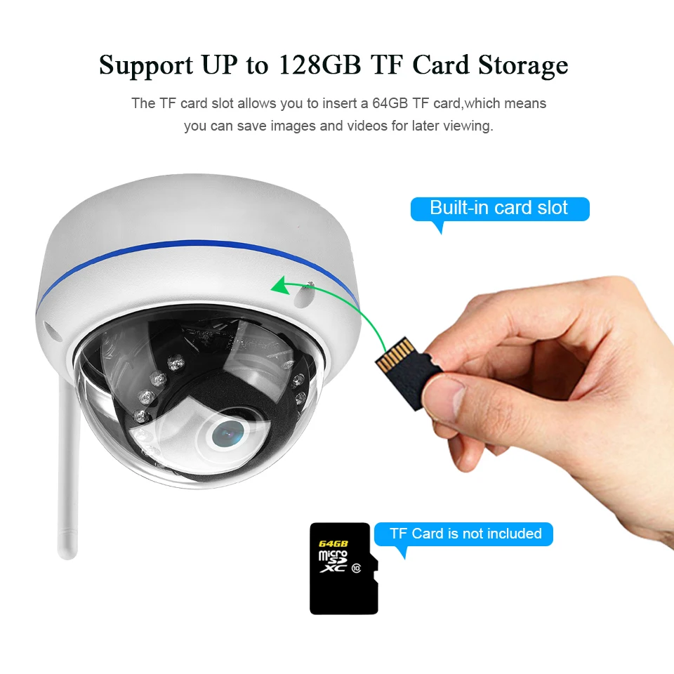 1080P WiFi Антивандальная ip-камера наружная беспроводная 2.0MP купольная камера Аудио запись Макс 128G TF слот для карты ONVIF P2P