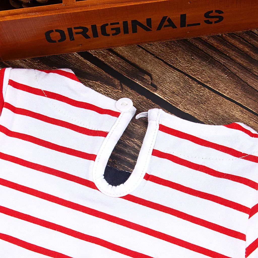 Kid Toddler Baby Girls Cartoon Stripe Shark Print Dress Short Sleeve Clothes