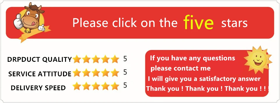 Если у вас есть какие-либо вопросы, пожалуйста, свяжитесь со мной. Я дам вам удовлетворительный ответ. Удовлетворены, пожалуйста, дайте пятизвездочную оценку. Спасибо! Спасибо! Спасибо!