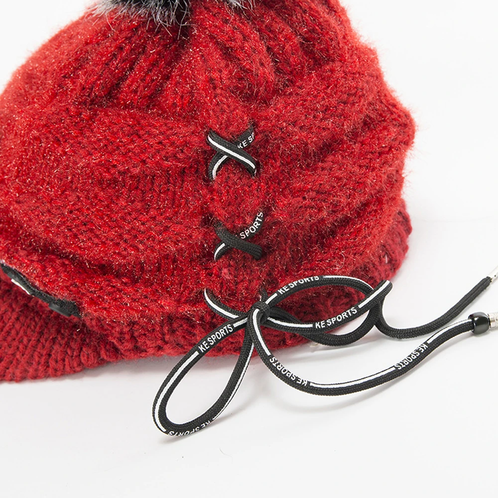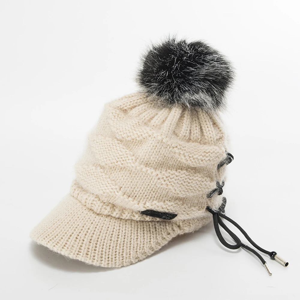 Спортивные шапки для женщин, новинка, красный мех енота, элегантная вязаная коса, береты, женские шапки, шнуровка, зимняя теплая шапка, 30