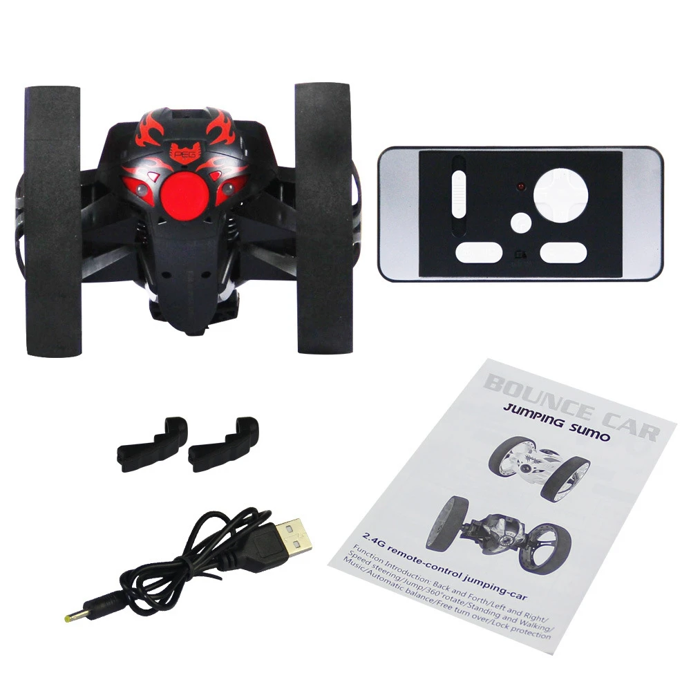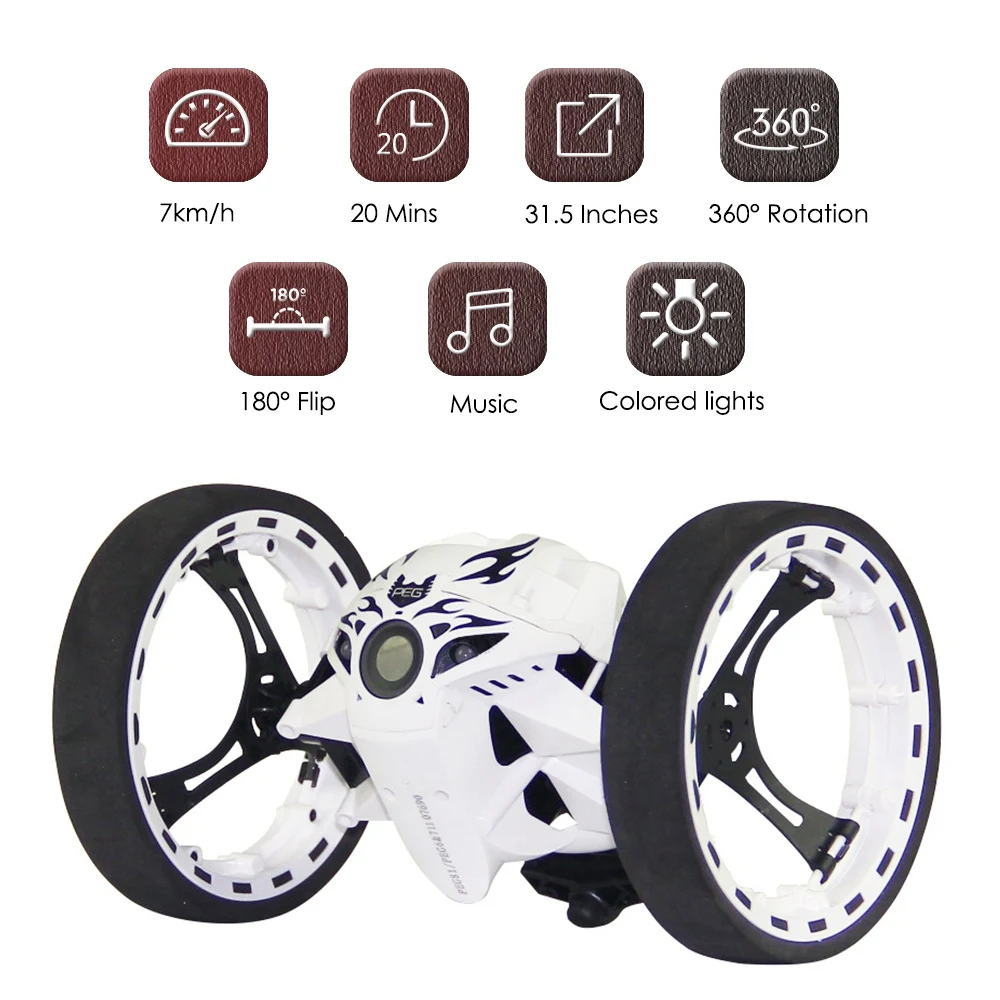 Почему стоит выбрать нас? -Защита от столкновений, бросок и ударопрочность за счет прочного и гибкого материала. -Невероятный автомобиль для трюков, Скачки до 31,5 Дюймов, скорость бега 7 км/ч, расстояние дистанционного управления 30-50 м. -Встроенный 3,7 в перезаряжаемый аккумулятор. -2,4 ГГц передачи, высокая производительность противоударное колеса может быть полностью выдвинуты. -180 градусов/360 градусов, быстрое вращение в течение 1 сек. -Можно повернуть вправо/влево, движение вперед/назад. Двигается с холодными звуками и светодиодный подсветкой. -Зарядка через USB, передатчик дистанционного управления работает от 2 батареек AAA (не входит в комплект). -Рекомендуется для возраста 14 лет и старше. Лучший подарок на 2019 год для ваших детей и друзей. Параметры: -Цвет: белый, черный -Материал: пластик -Размеры: 7,68*5,31*3,94 дюймов -Частота: 2,4 ГГц -Время зарядки: около 60 минут -Диапазон времени: около 20 минут -Расстояние управления: 30-50 метров Высота скачка: 80 см/31,5 дюйма -Автомобильные источника питания: Встроенный литий-ионный аккумулятор (3,7 в/300 мА · ч) -Управление Питание: 2 аккумулятора AAA (1,5 V/не прилагаются) -Длина кабеля USB: прибл. 50 см -Возраст: 14 лет -Канал управления: 4 канала -Дистанционное управление: Да -Посылка: посылка с коробкой Посылка включает в себя: 1 * автомобиль с отскоком 1 * USB кабель для зарядки 1 * пульт дистанционного управления 1 * Руководство по эксплуатации 2 * отскакивающие прокладки