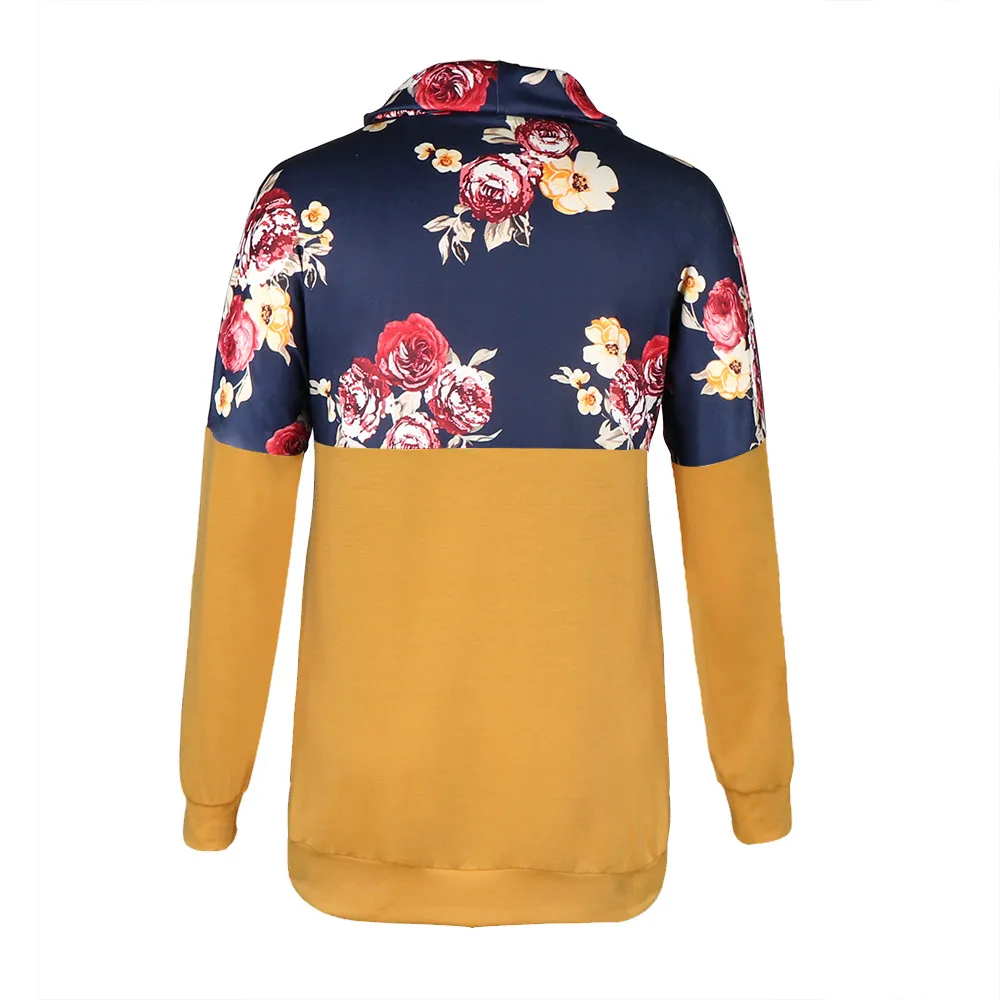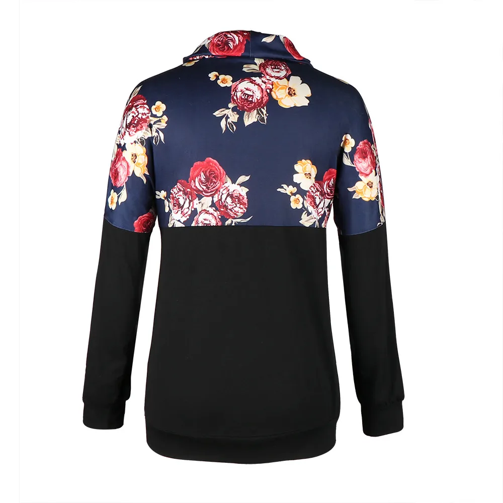 Женская водолазка, топы, рубашки с цветочным принтом, туника, пуловер с длинным рукавом, толстовка