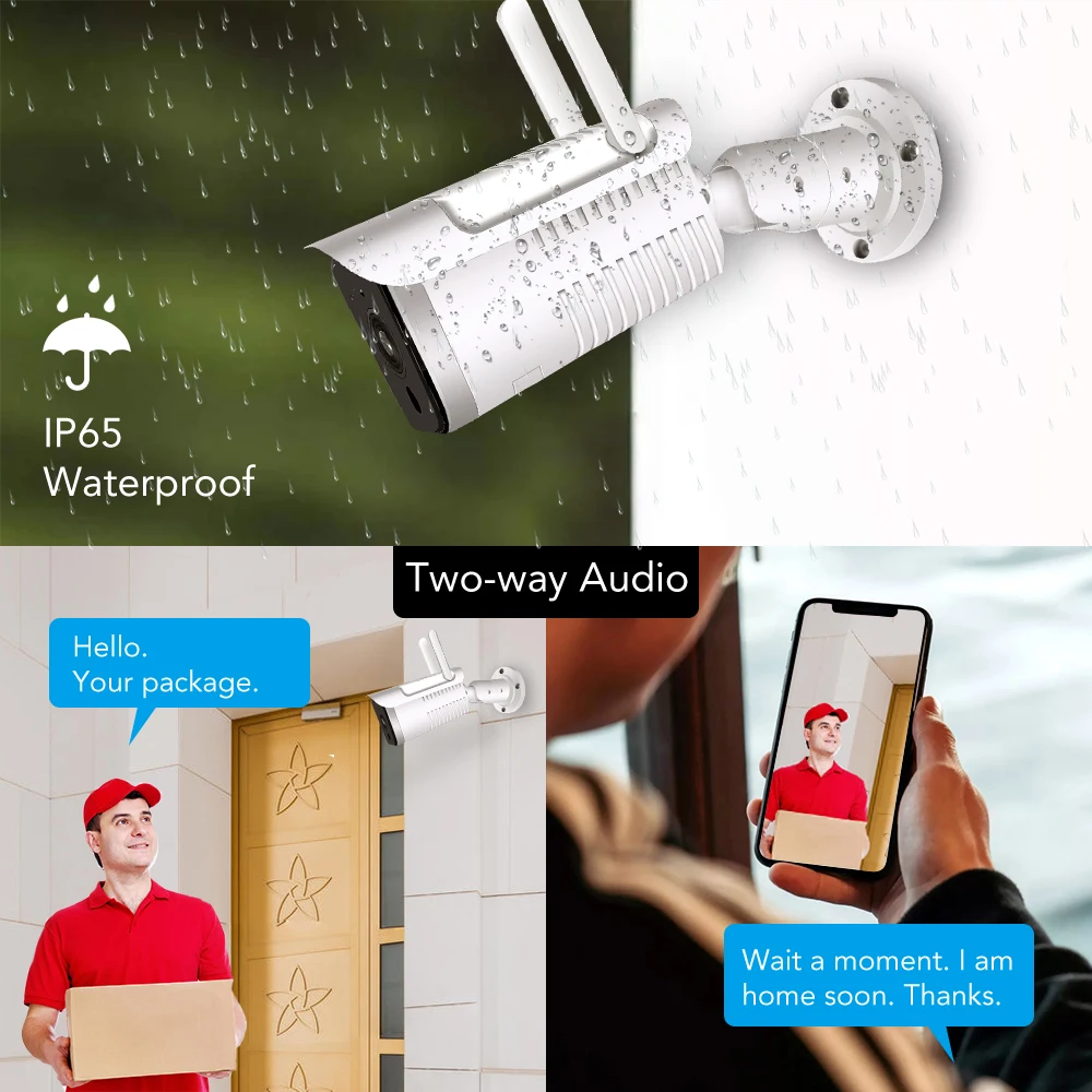 Keeper Открытый безопасности Камера, 1080P 2,4 ГГц Wi-Fi IP Камера с двумя), двусторонняя аудиосвязь, оповещение при обнаружении движения и Ночное видение, IP65 Водонепроницаемый Камеры Скрытого видеонаблюдения Камера поддерживает облачного хранилища и мульти-пользователей