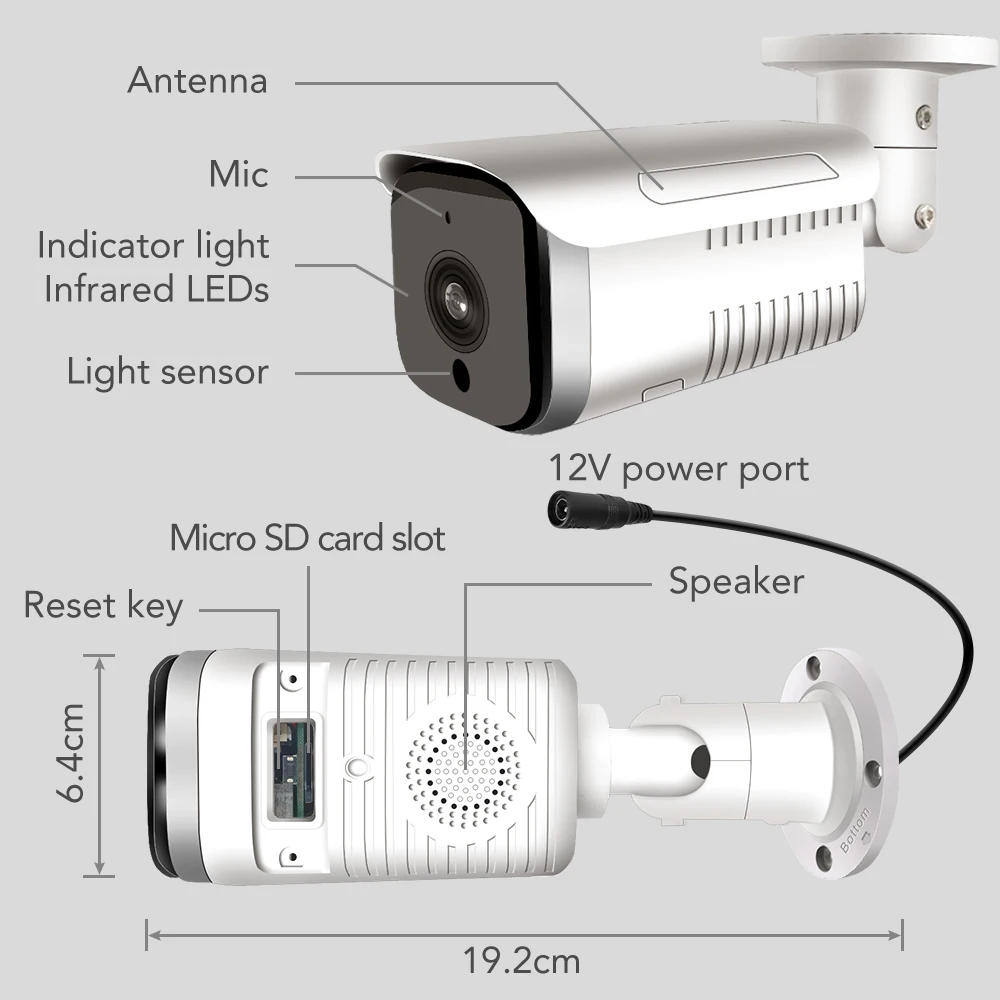 Описание продукта: Вот видео, которое поможет вам настроить изделие. Пожалуйста, посетите (//youtu.be/LOX6ejxGU0M) Удобное приложение и простота установки Используйте приложение для настройки настроек: умный будильник, фотографируйте и записывайте видео. Очень легко подключить камеру к приложению с помощью более умного режима сопряжения qr-кода даже для новичка. Smart обнаружения движения сигнализации Приложение будет нажимать уведомления и отправлять изображение, когда камера безопасности обнаруживает объекты движения. Запись событий или 24/7 циклическая запись Вы можете выбрать слот для карт памяти Режим записи: обнаружение движения запись событий или в режиме нон-стоп 24/7 запись. Облачное хранилище может быть подписано на различные виды услуг, как вам нужно. Мульти-пользователей Вы можете поделиться камерой с семьей в приложении, затем вы можете одновременно просматривать камеру. Примечание: Это ip-камера Wifi. Он работает только с 2,4 ГГц сети Wi-Fi. Он не поддерживает ONVIF и NVR. Важные советы перед использованием: 1. Wi-Fi камеры безопасности доступен до 2,4 ГГц Wi-Fi, Wi-Fi 5 ГГц в настоящее время не поддерживается. Пожалуйста, выберите 2,4 ГГц Wi-Fi на ваш телефон и убедитесь в том, что ваш телефоны подключаются с 2,4 ГГц Wi-Fi band перед подключением. 2. Загрузите мобильное приложение из App store. Пожалуйста, сбросьте камеру перед подключением к приложению. 3. Пожалуйста, внимательно прочитайте руководство пользователя, чтобы настроить камеру. Технические характеристики Разрешение: 1920*1080P Датчик изображения: 1/2.9 CMOS Сжатие видеоизображения: H.264 Беспроводная сеть: 802.11b/g/n @ 2,4G Рабочая температура: -10 ℃ ~ 50 ℃ Хранение: карта Micro SD (макс. 256 г, не входит в комплект); Облачное хранилище (необходимо подписаться) ИК-Расстояние: 2 инфракрасных света, максимум до 33 футов Источник питания: DC12V 1A Потребляемая мощность: 6 Вт макс. Водонепроницаемый: IP65 Что в посылка: 1 ×security камера 1 ×user руководство 1 ×screws пакет 1 × 12 В адаптер питания 1080P домашняя камера с ночным видением. Камера безопасности является экспертом в захвате движущихся объектов в реальном времени и показывает каждую деталь в блестящей ясности. Advanced ночное видение со встроенным инфракрасный светодиодный свет продлить видимость на расстоянии до 10 метров в темноте. Простое подключение к Wifi и совместимость с Alexa. Режим Smart qr-кода net-сопряжение облегчает и ускоряет подключение к wifi и приложению. Он работает только с 2,4 ГГц Wi-Fi диапазона сети. Камера также совместима с Alexa, Echo Show. Мощная Wi-Fi антенна и сильная проницаемость сигнала делают его гораздо более стабильным для просмотра видео живым. Хранение карт Micro SD и Облачное хранилище. Встроенный слот карты micro SD, видео можно сохранить на micro SD-карте. Максимальная поддержка 256G. Карта micro SD в комплект не входит. Облачное хранилище может защитить видео, чтобы избежать риска потери видео с sd-карты. Чистый двухсторонний аудио и умный будильник. Встроенный микрофон и динамик позволяют вам общаться с вашими гостями через приложение для телефона. Оповещения с активированным движением и уведомления приложений в реальном времени отправляются на ваш телефон при обнаружении движения. Он отправит снимок и загружает видео. IP65 Водонепроницаемый и DC 12V источник питания. Камера наблюдения поддерживает защиту от атмосферных воздействий IP65, которая идеально подходит как для внутреннего, так и для нару