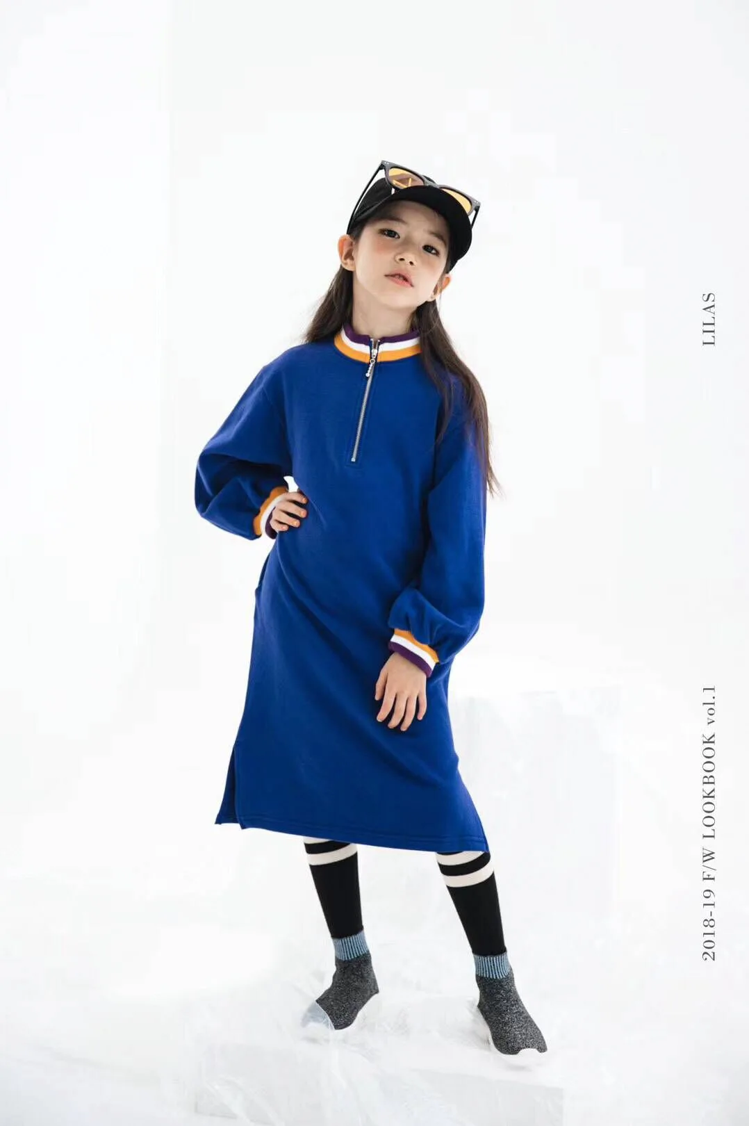 Повседневное хлопковое платье в рубчик с длинными рукавами и манжетами для девочек от 4 до 16 лет осенне-зимний теплый свитер длинное платье