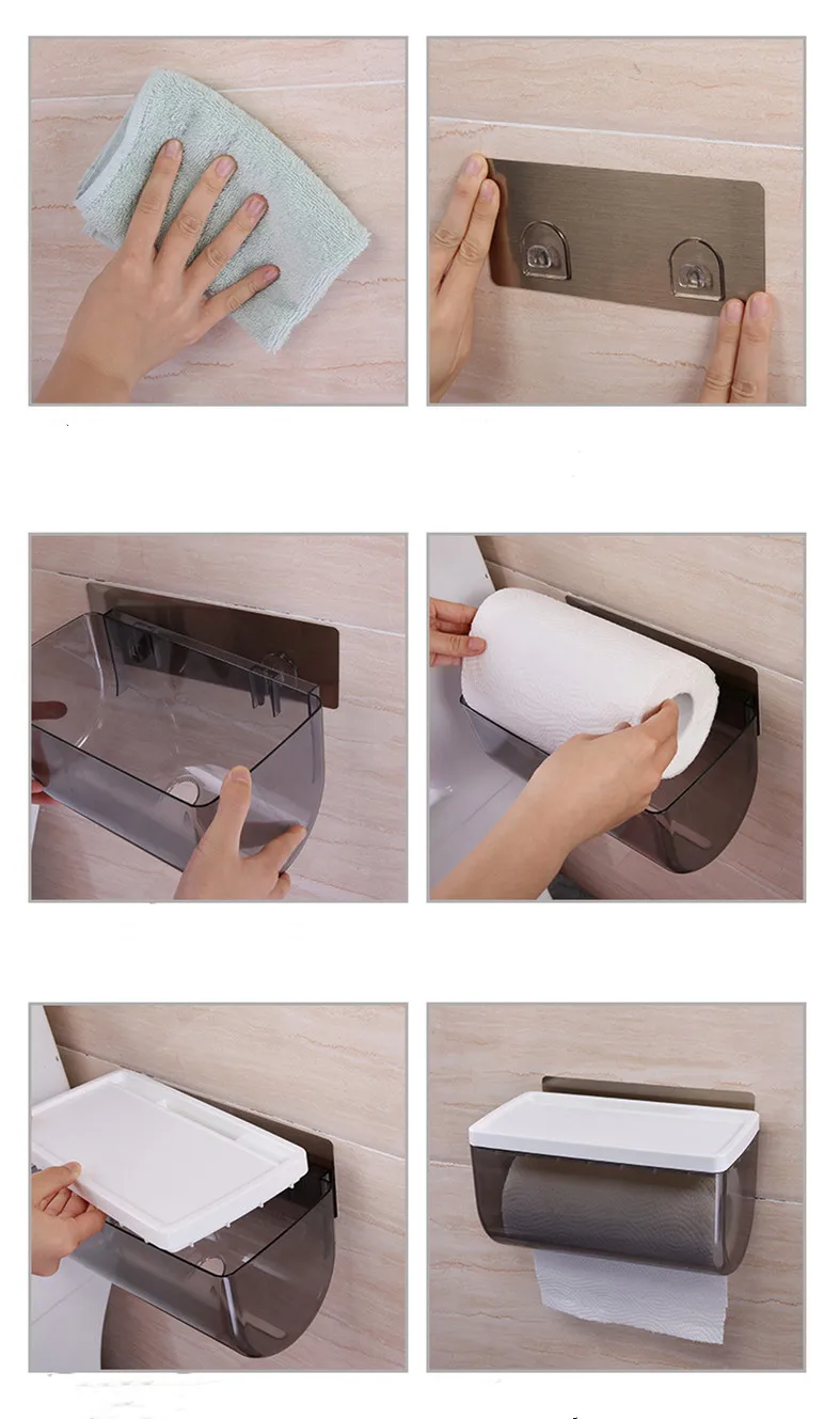 Wall Mount Toilet Paper Holder Shelf Nail Free Bathroom Roll Paper Storage Box Durable Plastic Tissue Holder