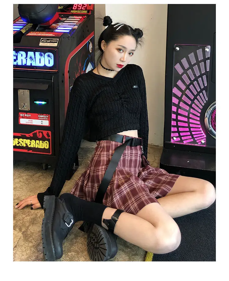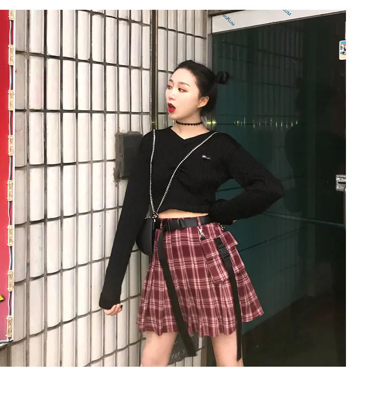 Элегантная Высокая талия с поясом на молнии лента карман плиссированная мини юбка Harajuku уличная Корейская женская готическая хип хоп карго Панк Сексуальная