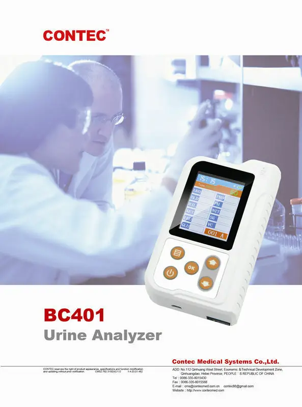 BC401 анализатор мочи является высокоточным интеллектуальным инструментом, который исследуется и разрабатывается на основе современной оптики, электроники, компьютерной науки и других передовых технологий для клинического осмотра мочи. GLU, BIL, SG, KET, BLD, PRO, URO, NIT, LEU, VC и PH в моче могут быть протестированы с помощью специальных тест-полосок. И он применим для использования в больницах, общественных медицинских службах, клиниках, больницах и семьях и т. Д.