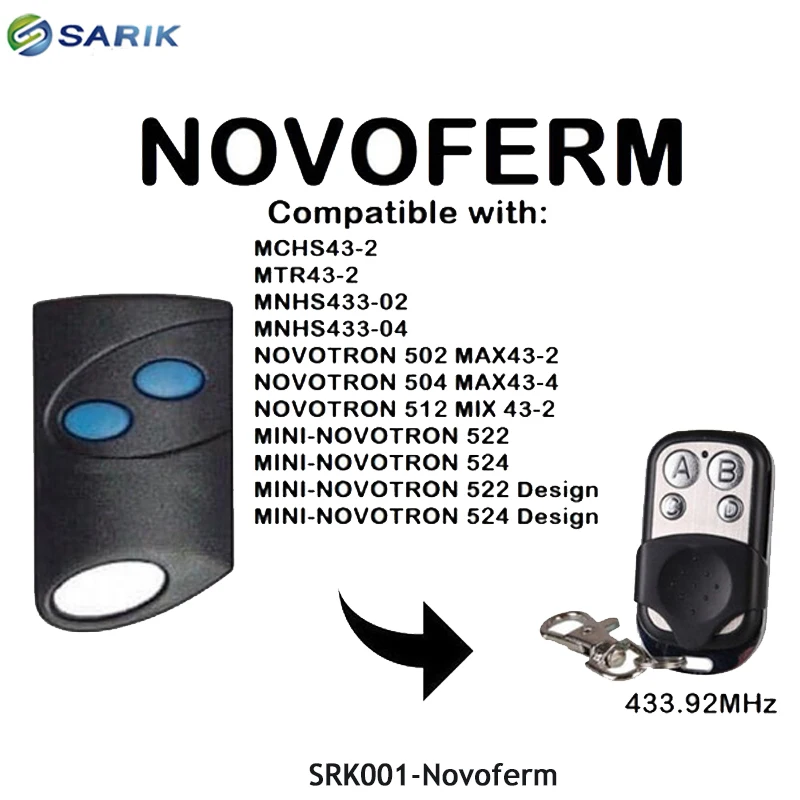 NOVOFERM NOVOTRON 502 MAX43-2, 504 MAX43-4 запасной пульт дистанционного управления 433,92 МГц код прокатки дистанционный передатчик