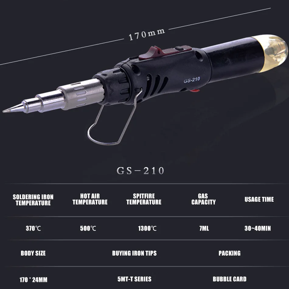 GS-210 автоматическое зажигание Газовый паяльник пистолет горячего воздуха пистолет-распылитель 3-в-1 зажигания легкий пневматический