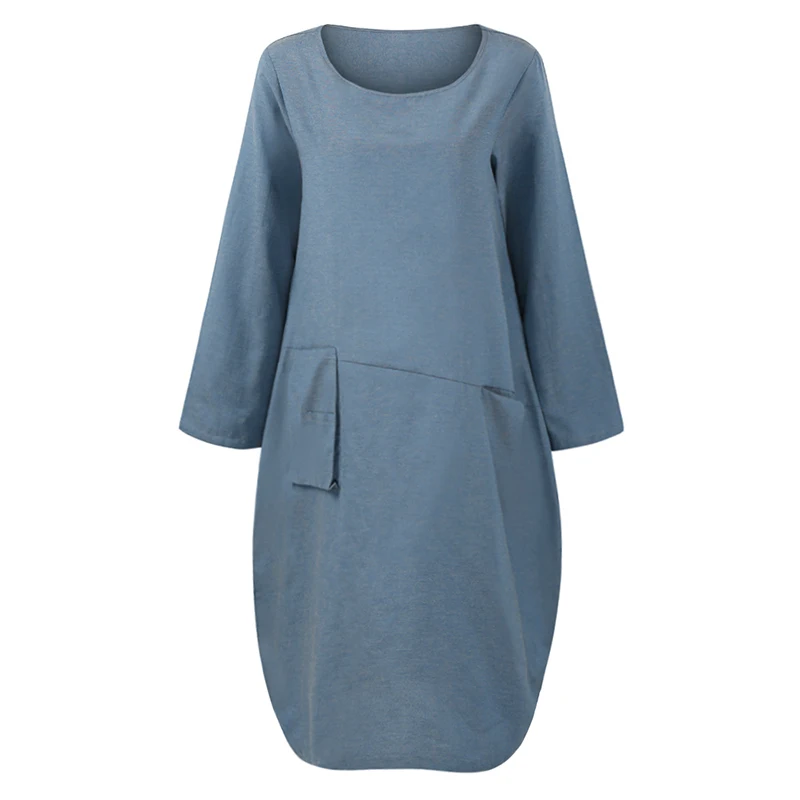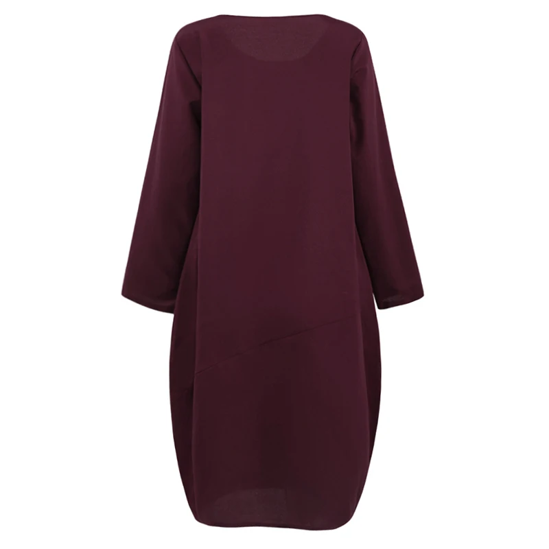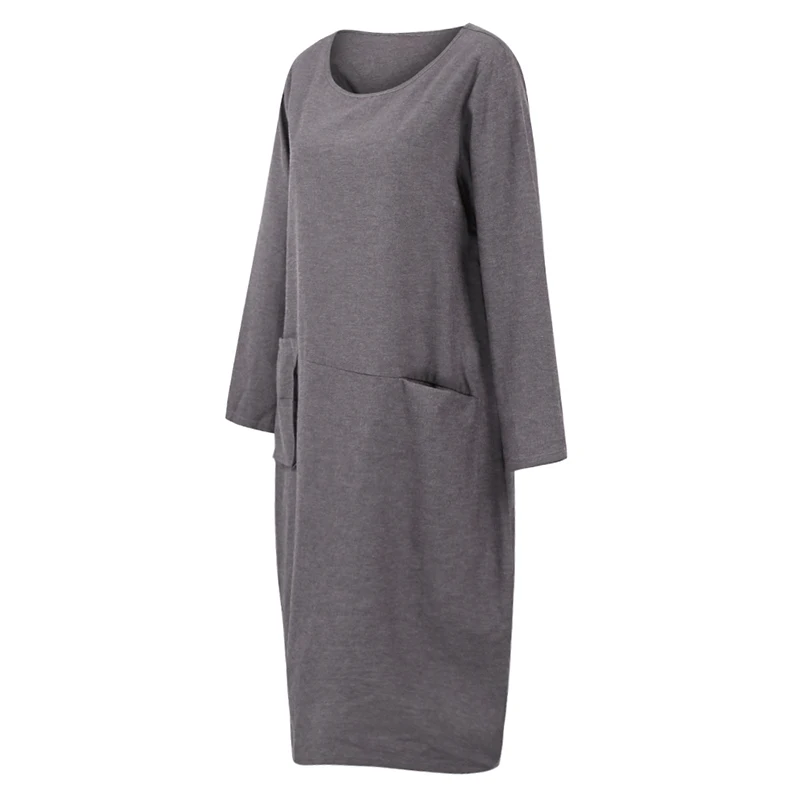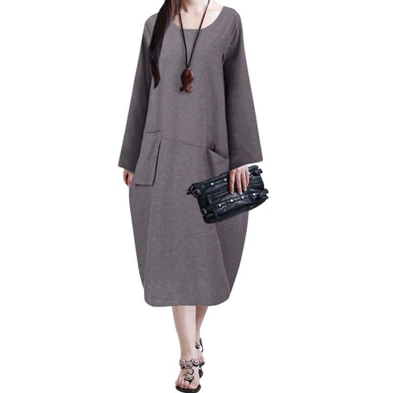 Это свободное винтажное длинное платье станет чем-то особенным в этом сезоне. Он имеет очень свободный мешковатый подол, длинные рукава, передние карманы и комбинированные детали, чтобы сделать его немного другим. Идеально сочетается с ожерельем в этническом стиле.