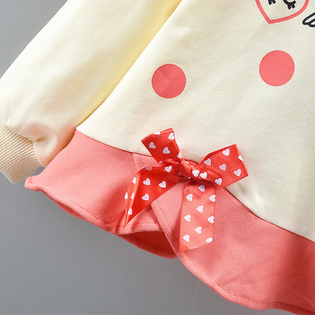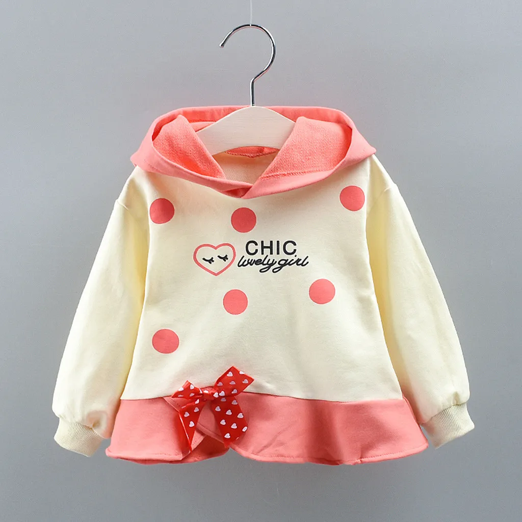 Одежда для малышей футболка с длинными рукавами для девочек в горошек с рисунками из мультфильмов; толстовка с текстовым принтом Одежда для детей