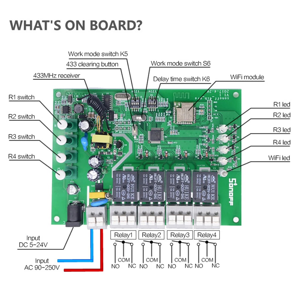 Используется для дистанционного управления подключенными устройствами, мощная совместимость, подходит для SONOFF BASICRF, BASICRFR3, Slampher, iFan03, D1, 4CHProR-2, TX series, 433 RF Bridge и других устройств, поддерживающих протокол связи 433, простота сопряжения и простота установки.