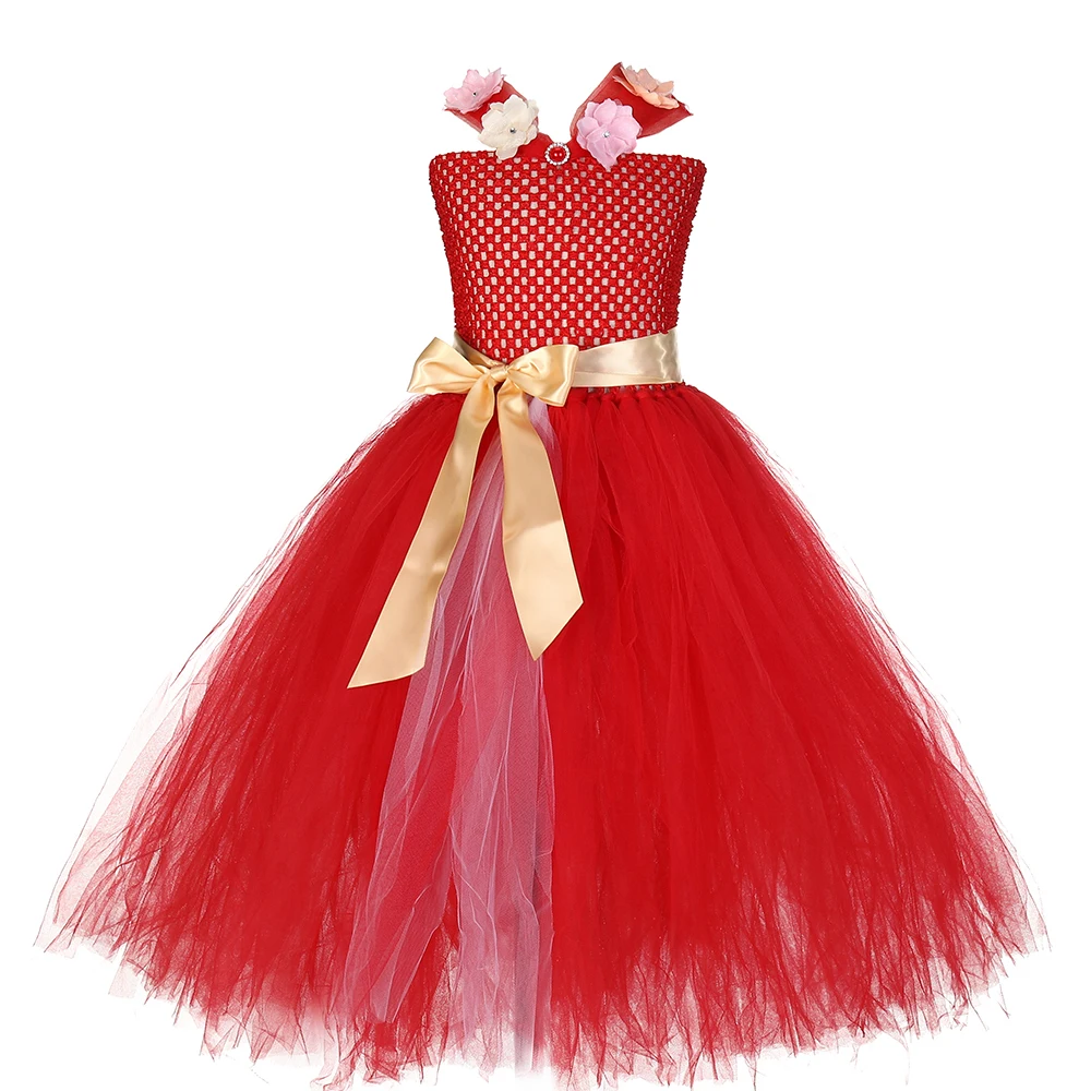 Платье-пачка принцессы Елены для девочек; Вечерние платья с красными цветами для девочек на День рождения; Детский карнавальный костюм Елены на Рождество и Хэллоуин