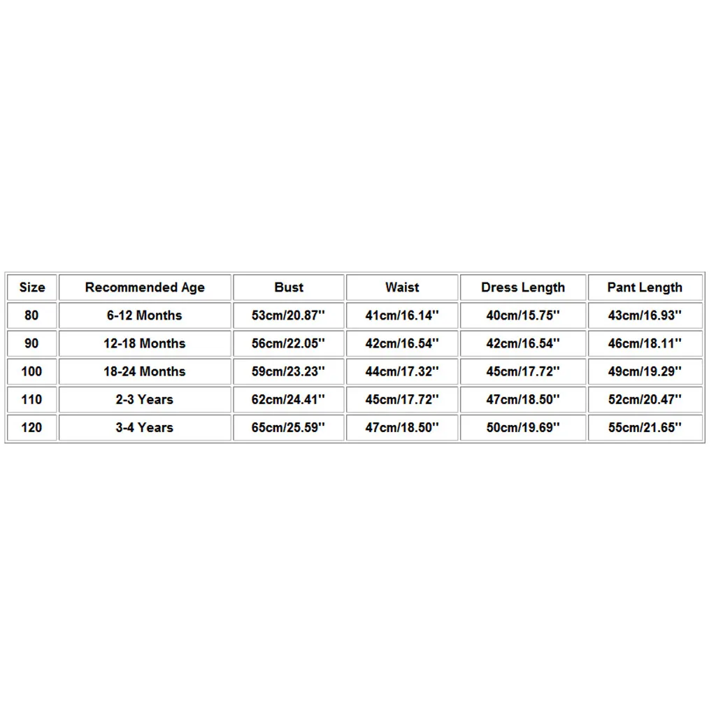 | Размер | Рекомендуемый возраст | Обхват груди | Обхват талии | Платье Длина | Брюки Длина |