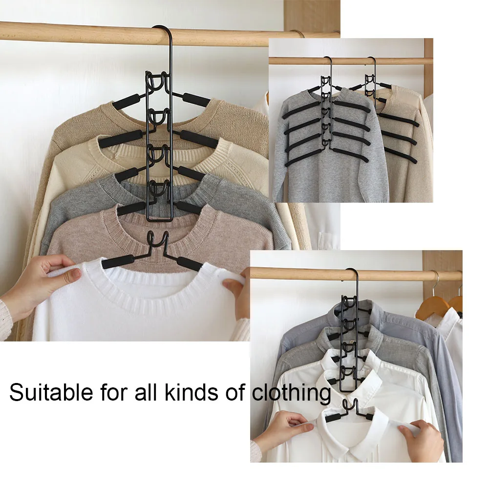 Multi-Layer Anti-Slip Clothes Hangers Save Space 5 in 1 Metal Laundry Rack Storage for Shirt Sweater Suit Dress Coat HFing