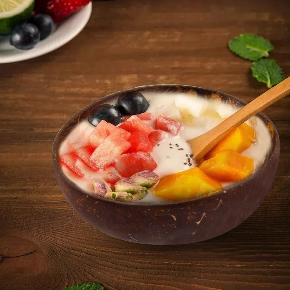Натуральная чашка в виде кокоса украшение фруктовый салат лапша, рис чаша деревянная чаша для фруктов украшение ручной работы креативная миска из скорлупы кокоса