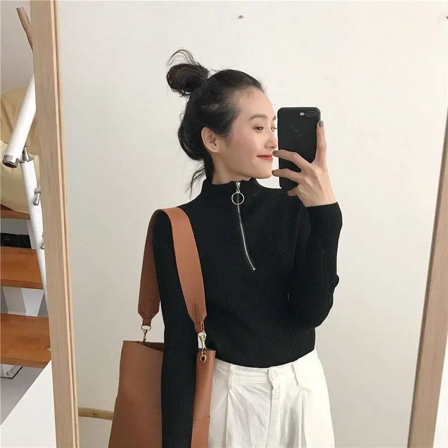 Casual Zipper Sweater Women Turtleneck Solid spring autumn female Knitted sweater Pullovers long Sleeve chic Soft Jumper top
