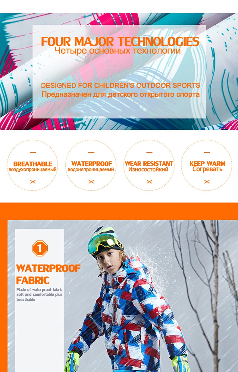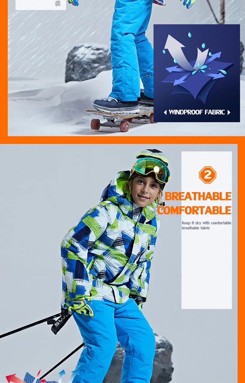 Детский костюм для сноуборда и зимняя куртка Водонепроницаемая спортивная