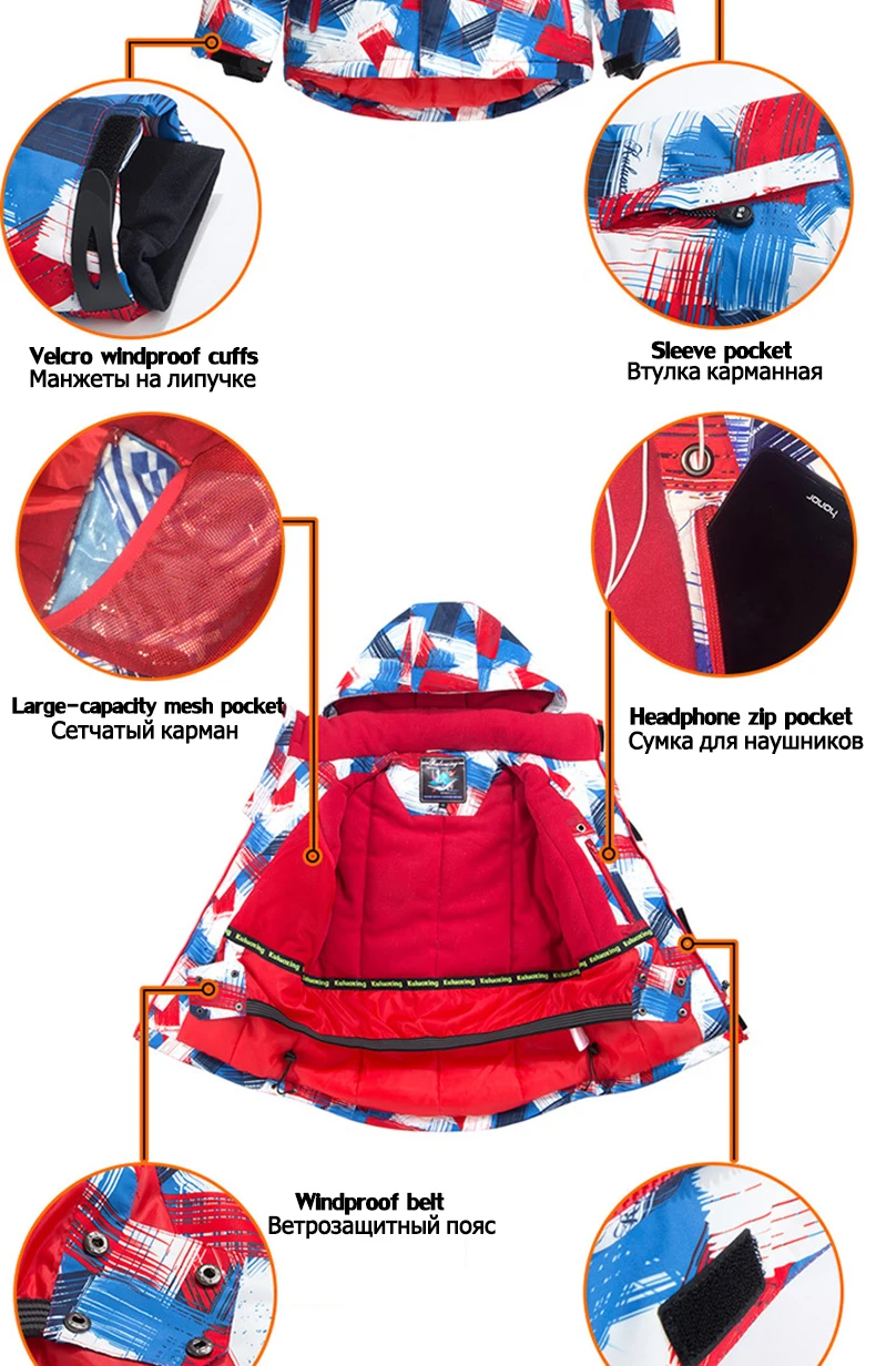 Очень толстая теплая детская Лыжная куртка с капюшоном из синтетического