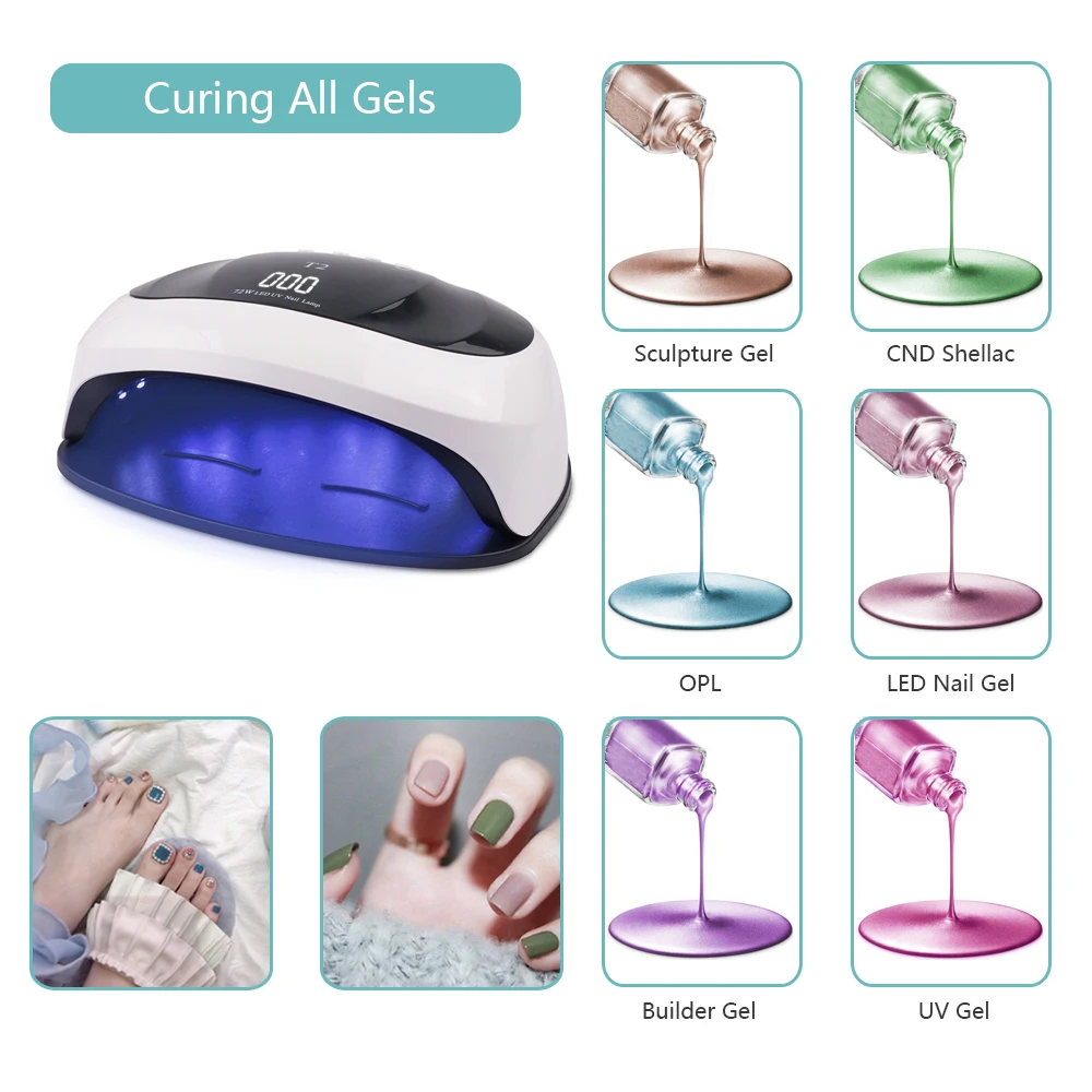 Этот продукт является профессиональной сушилкой для ногтей, обеспечивая вам салонного уровня ухода не только за ногтями, но и ногтями. Отличается от традиционной УФ-ногтевые лампы, за исключением УФ-клея для ногтей, эта нагревательная машина также может быть использована для сушки всех других гели для ногтей.