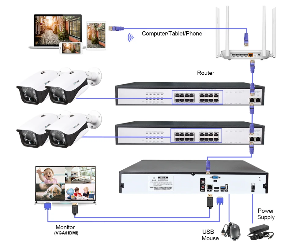 1. Наши новыеСистема камеры POE 5 Мп. 32 канальный NVR дизайн, поддержка подключения до 32 шт камер, вы можете купить Loxcam ip-камеры с питанием по POE для расширения вашей системы видеонаблюдения.