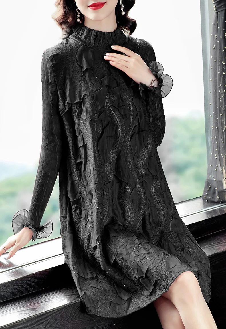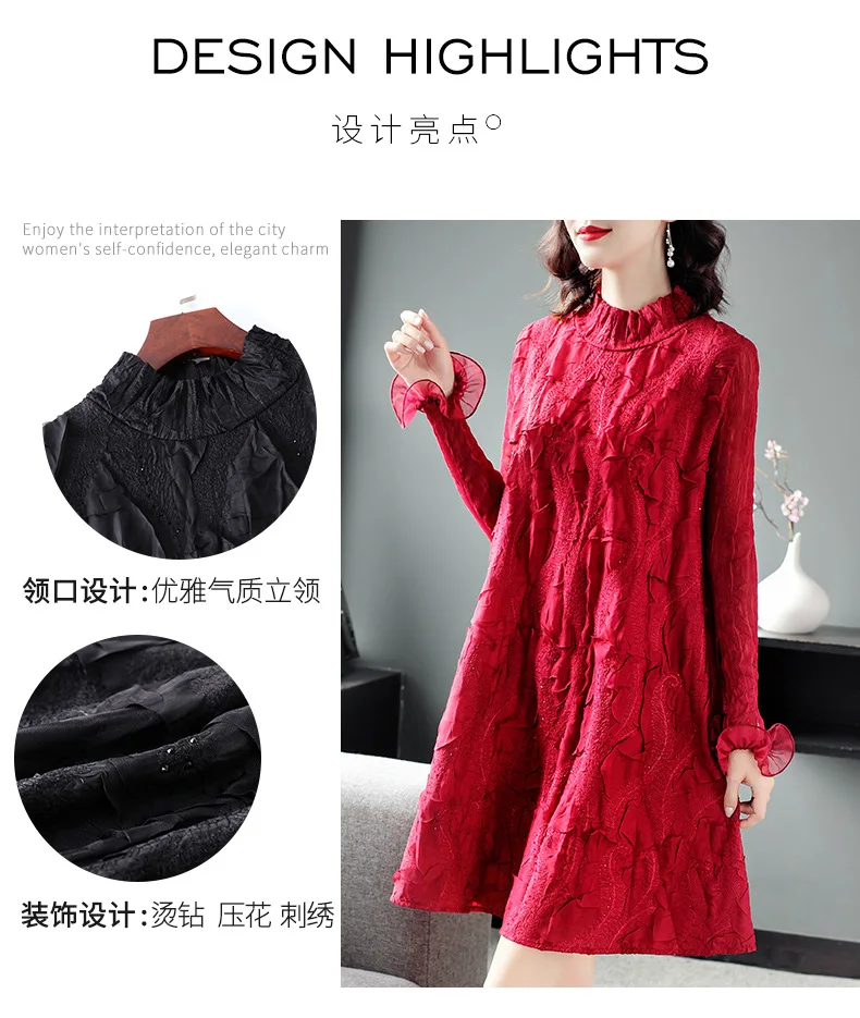 Элегантное свободное винтажное платье HziriP красное до середины икры с v образным