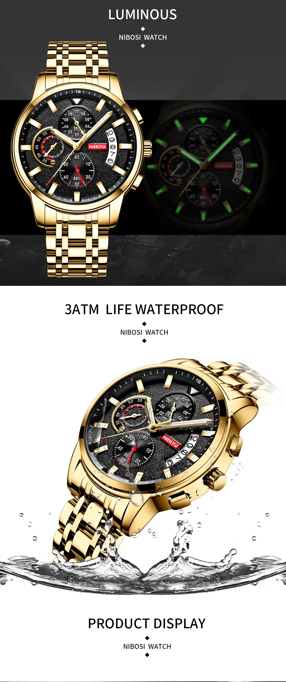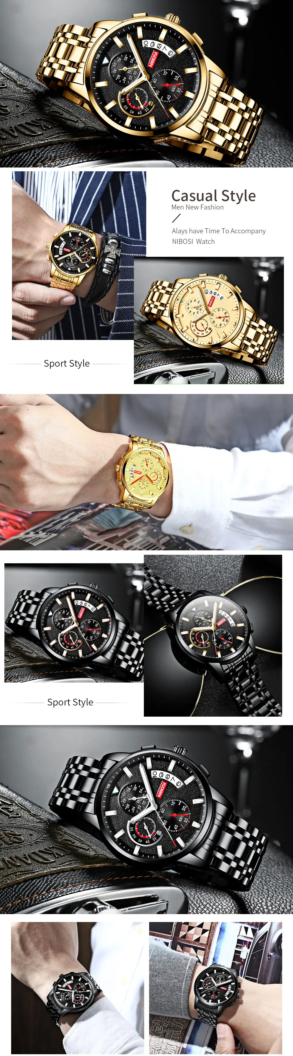 Мужские водонепроницаемые кварцевые часы NIBOSI, спортивные часы с хронографом, полностью из стали, модель 2020