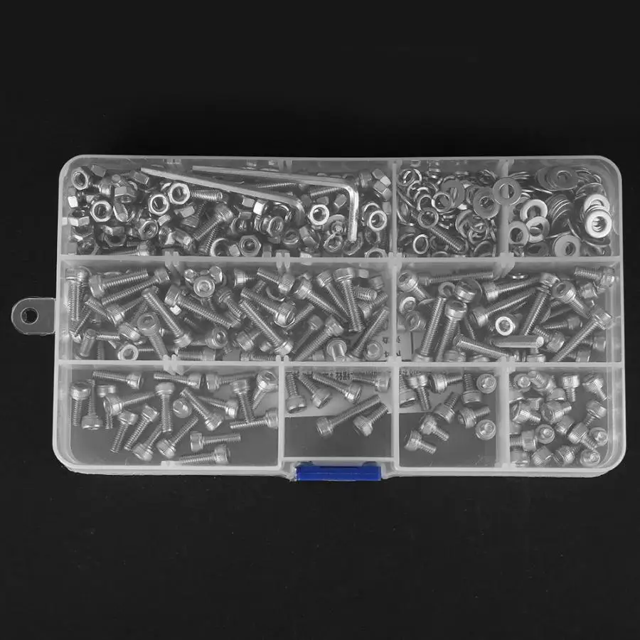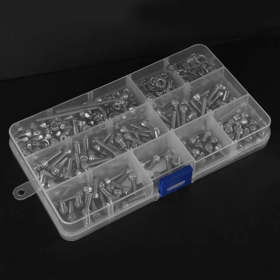 662 шт. набор винтов 304 из нержавеющей стали цилиндрический винт + плоская/эластичная шайба + гайка
