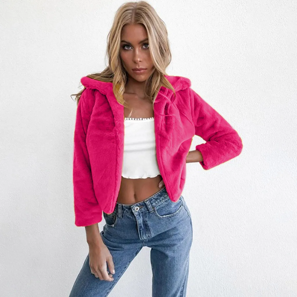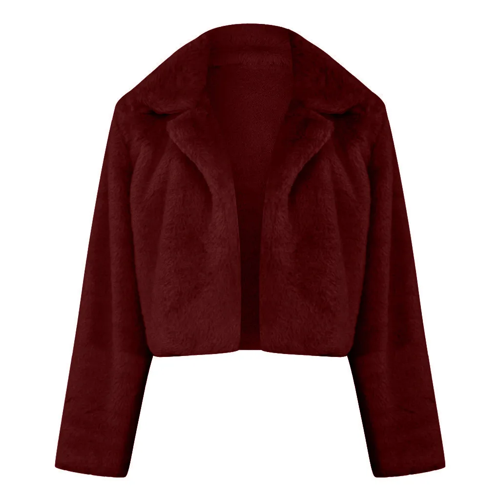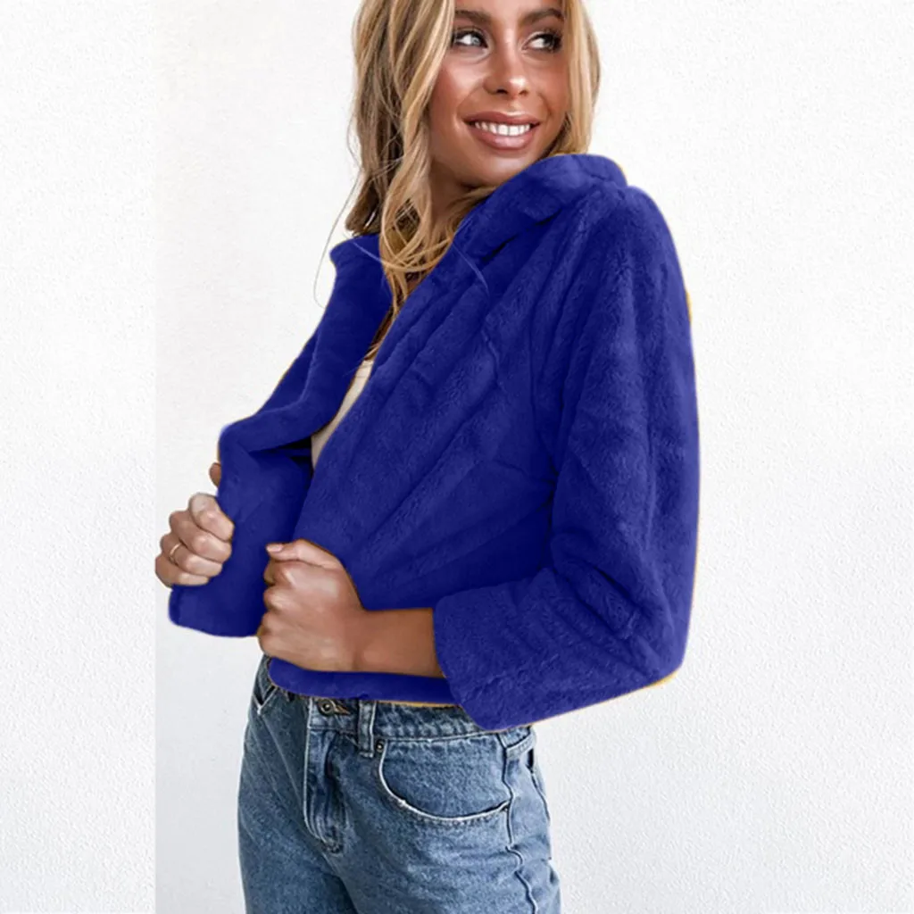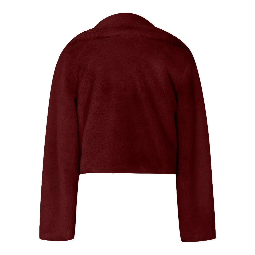 Зимняя женская мода длинный рукав кардиганы с лацканами куртка однотонное короткое пальто