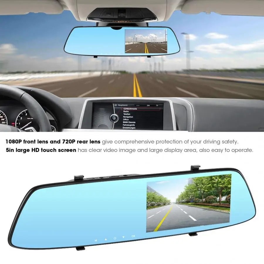 5in 1080 P поток медиа зеркало заднего вида вождения рекордер двойной объектив HD ночного видения камера