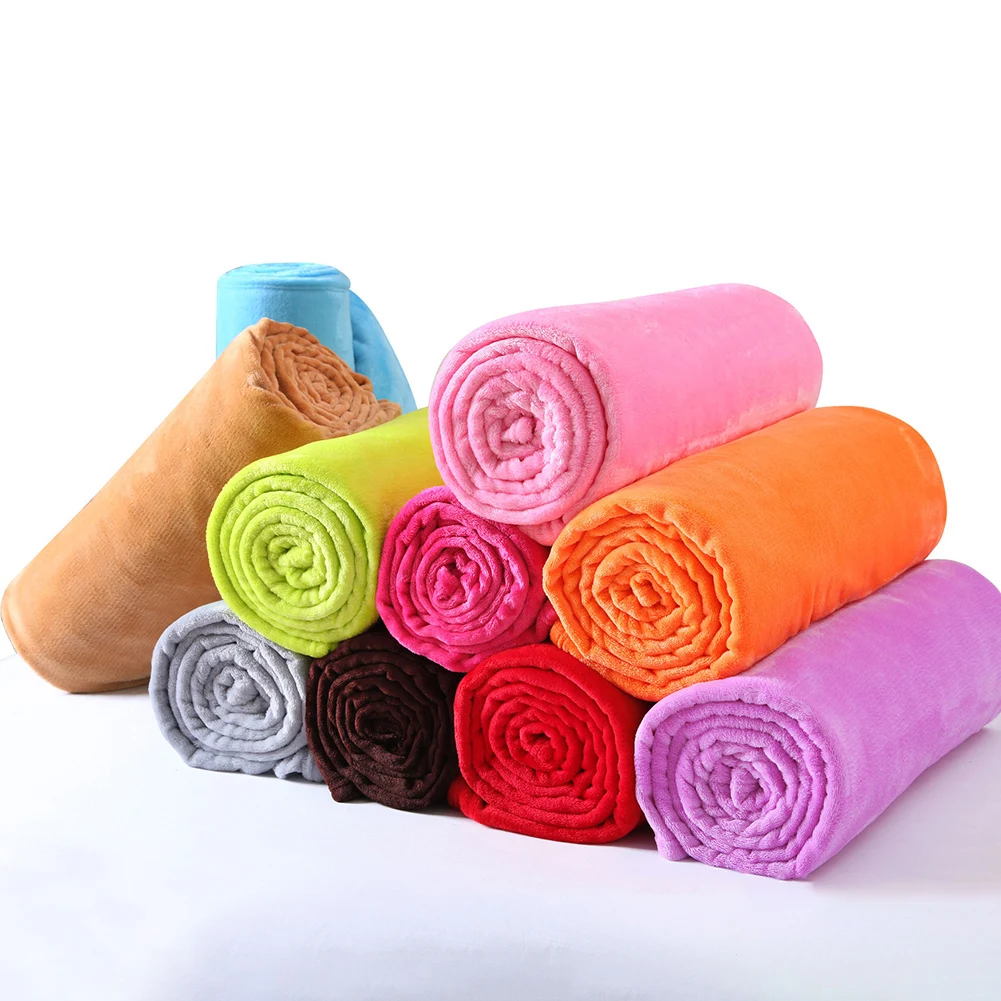 Winter Soft Warm Solid Coral Fleece Bedspread Cover Sofa Office Flannel Blanket