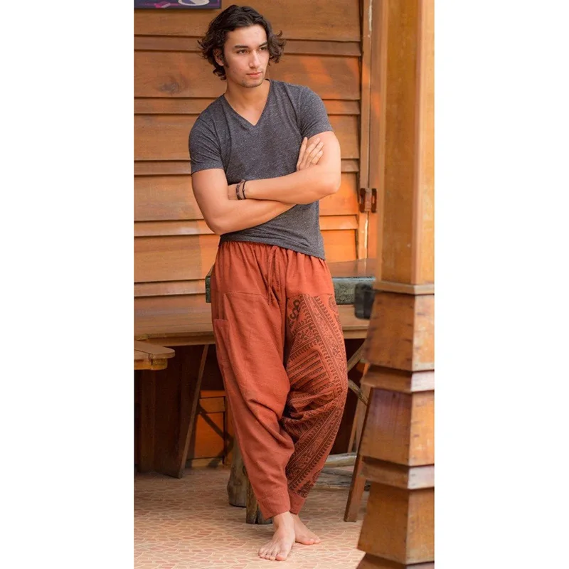 Hip Hop Aladdin Hmong Baggy Boho Cross-pants Men Medieval Renaissance Pirate Horseman Loose Pants Viking Trousers Harem Pants ecoparty